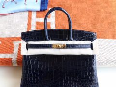 HERMES 客定发货、做工精湛 堪称精品;2Z午夜蓝 Birkin25CM 俩点亮面鳄鱼 纯手缝蜡线缝制