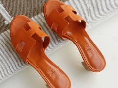 HERMES 9D琥珀黄 H中跟4.5拖鞋 爱马仕 Epsom 34-42码