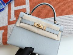 爱马仕 8U冰川蓝 金扣 Minikelly二代 原厂Epsom皮 迷你凯莉包 纯手缝蜡线缝制工艺