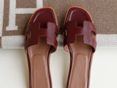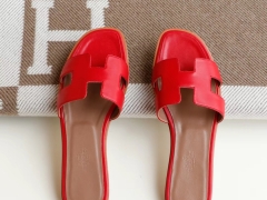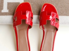 夏季旅游必备凉拖 H平底女拖鞋凉拖鞋漆皮 中国红 34-42码