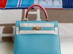爱马仕 P3北方蓝拼唇膏粉 金扣 Kelly25CM 法国原厂Epsom皮 凯丽凯莉包 纯手缝蜡线缝制
