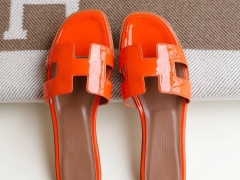 夏季旅游必备凉拖 H平底女拖鞋凉拖鞋漆皮 橙色 34-42码
