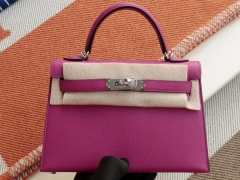 HERMES 3L玫瑰紫 银扣 Minikelly二代 原厂Epsom皮 迷你凯莉包 纯手缝蜡线缝制
