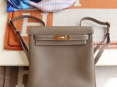 爱马仕 CK18大象灰 金扣 Kellyado背包 原厂Clemence皮 法国蜡线 全手缝 现货