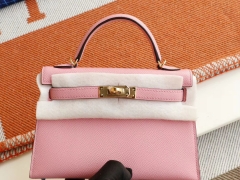 Hermes 1Q奶昔粉 金扣 Minikelly二代 原厂Epsom皮 迷你凯莉包 纯手缝蜡线缝制