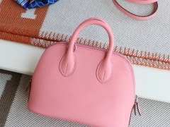 爱马仕 8W唇膏粉 17mini bolide 保龄球 山羊皮 银扣 机车蜡线 小巧可爱 有肩带可斜挎