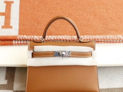 HERMES CC37金棕 银扣 Minikelly二代 原厂Epsom皮 迷你凯莉包 纯手缝蜡线缝制