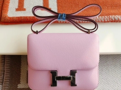 爱马仕 X9锦葵紫 Constance19CM 空姐包 原厂Epsom皮 银扣 纯手工手缝工艺制作