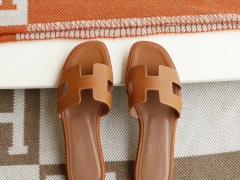 夏季旅游必备凉拖 H平底女拖鞋凉拖鞋Epsom皮 金棕色 34-42码