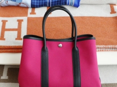 HERMES Garden Party 花园包30CM 黑色拼8W唇膏粉 老师傅手工缝制