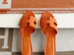 爱马仕 夏季旅游凉拖必备 女拖中跟4.5拖鞋 Epsom皮 经典橙