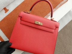 H家 西瓜红 金扣 Kelly25CM 原厂Epsom皮 凯丽凯莉包 纯手缝蜡线缝制