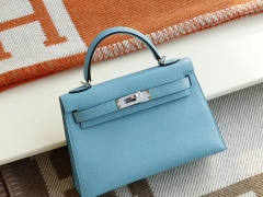 HERMES P3北方蓝 银扣 Minikelly二代 原厂山羊皮皮 迷你凯莉包 纯手缝蜡线缝制工艺