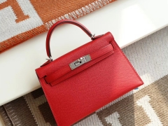 爱马仕 S3心红 银扣 Minikelly二代 原厂Epsom皮 迷你凯莉包 纯手缝蜡线缝制工艺