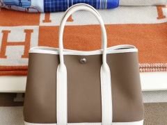 爱马仕 Garden Party 花园包30CM 纯白拼大象灰帆布 老师傅手工缝制