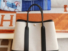 爱马仕 黑色拼帆布 garden Party花园包30CM 专柜御用Nagonda皮老师傅纯手工缝制