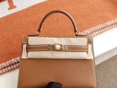 HERMES Ck37金棕 金扣 Minikelly二代 原厂山羊皮皮 迷你凯莉包 纯手缝蜡线缝制