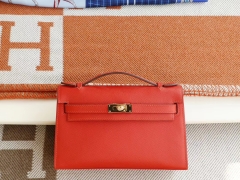 爱马仕 宴会手挽款 9J火焰橙 金扣 Minikelly一代 原厂Epsom皮 迷你凯莉包 纯手缝蜡线缝制