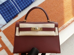 HERMES CK57 波尔多酒红 金扣 Minikelly二代 原厂Epsom皮 迷你凯莉包 纯手缝蜡线缝制