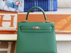 爱马仕 1K竹子绿 银扣 Kelly25CM 原厂Epsom皮 凯丽凯莉包 纯手缝蜡线缝制