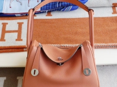 爱马仕 Lindy26CM老师傅纯手缝蜡线 5L龙虾粉 银扣 TC皮 琳迪包