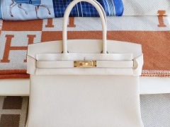 爱马仕 CC10奶昔白 金扣 Birkin30CM 法国togo小牛皮 纯手缝蜡线缝制工艺
