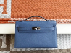 爱马仕 宴会手挽款 R2玛瑙蓝 金扣 Minikelly一代 原厂Epsom皮 迷你凯莉包 纯手缝蜡线缝制