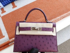 爱马仕 P9海葵紫 银扣 Minikelly二代 南非Kk鸵鸟皮 迷你凯莉包 纯手缝蜡线缝制