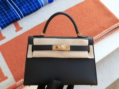 爱马仕 CC89黑色 金扣 Minikelly二代 原厂Epsom皮 迷你凯莉包 纯手缝蜡线缝制工艺