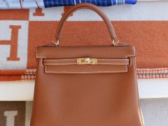 H家 CK37金棕 内缝 金扣 Kelly25CM 原厂Togo皮 凯丽凯莉包 纯手缝蜡线缝制