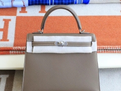 爱马仕 CK18大象灰 银扣 Kelly25CM 原厂Epsom皮 凯丽凯莉包 纯手缝蜡线缝制工艺