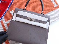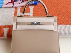 HERMES S2风衣灰 银扣 Kelly25CM 原厂Epsom皮 凯丽凯莉包 纯手缝蜡线缝制工艺