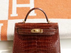 Minikelly二代 法国顶级Hcp亮面两点尼罗鳄Shiny Niloticus 31 Miel 蜜糖棕 金扣 铂金包 顶尖工艺 全手缝蜜蜡线缝制
