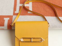 HERMES 9D琥珀黄 Roulis19CM 猪鼻子包 原厂evercolor皮 顶级纯手缝工艺缝制