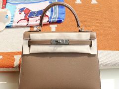 HERMES CC10奶昔白拼CK18大象灰 银扣 Kelly25CM 原厂Epsom皮 凯丽凯莉包 纯手缝蜡线缝制工艺