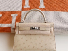 Hermes 1Q奶昔粉 银扣 Minikelly二代 原厂鸵鸟皮 迷你凯莉包 纯手缝蜡线缝制